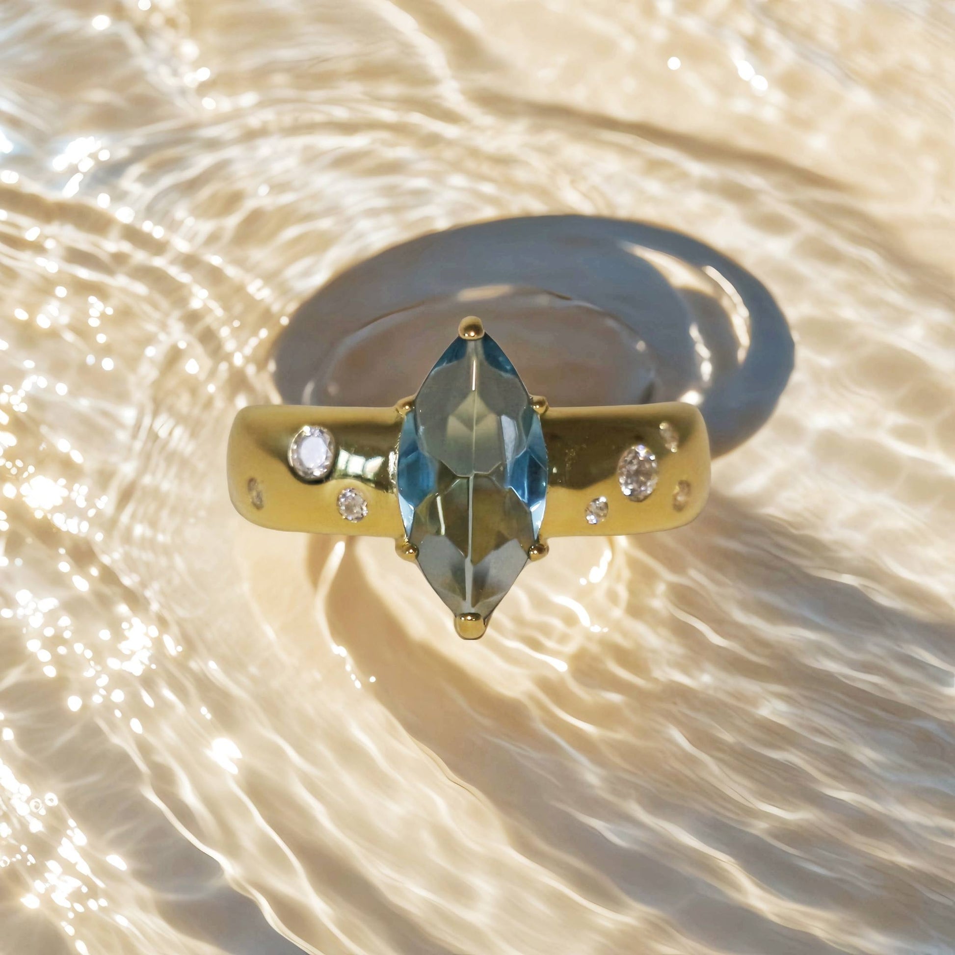 Blue Marquise Stone Ring · Adjustable Gold-Plated Silver